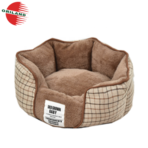 Модная круглая клетчатая мягкая кровать для кошек и собак, теплое гнездо из флиса, удобные товары для животных, упакованные в картонную коробку